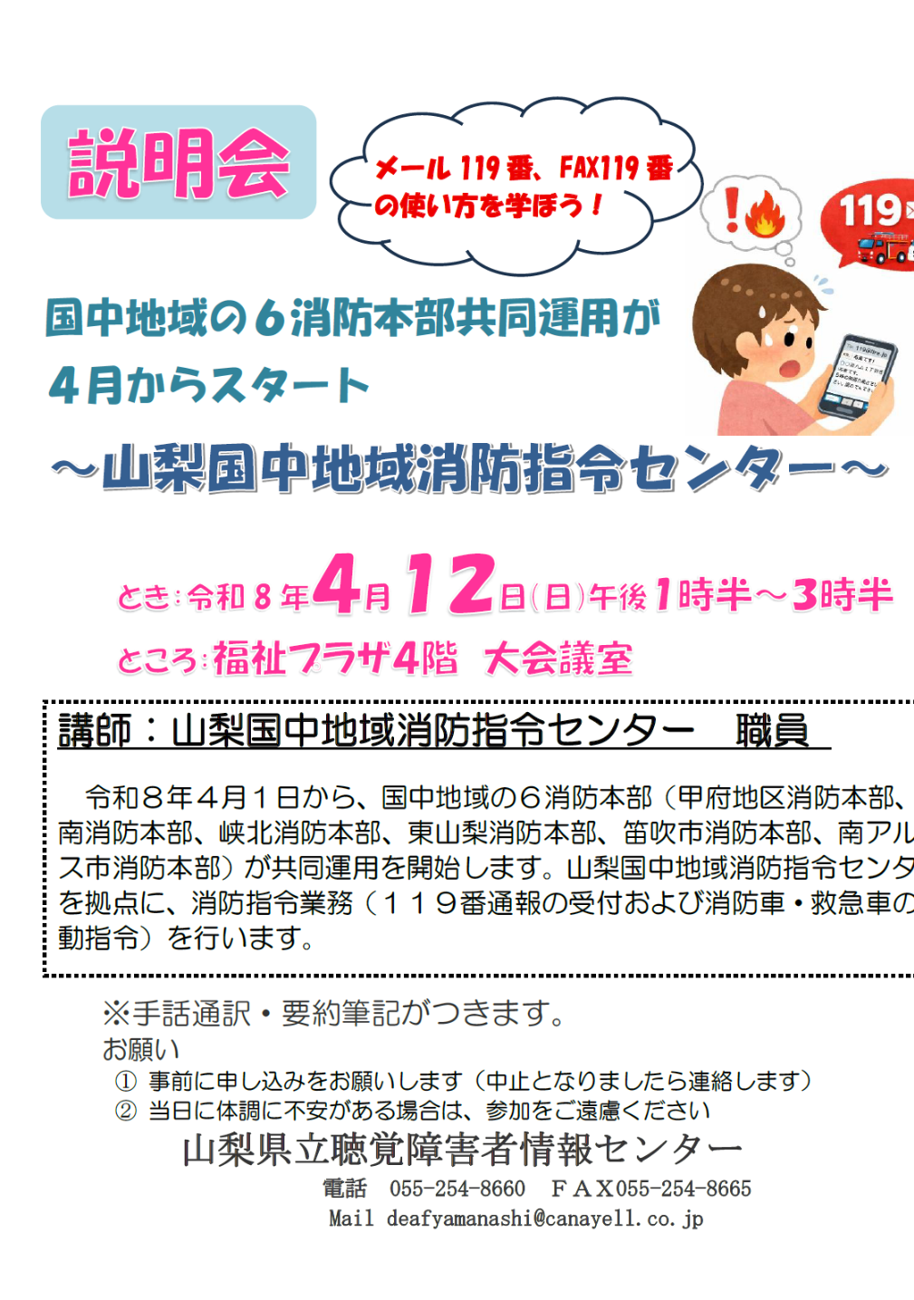 県内の消防署でNet119通報システムの運用が開始されました。お住いのエリアにある消防署へ事前に登録が必要です。